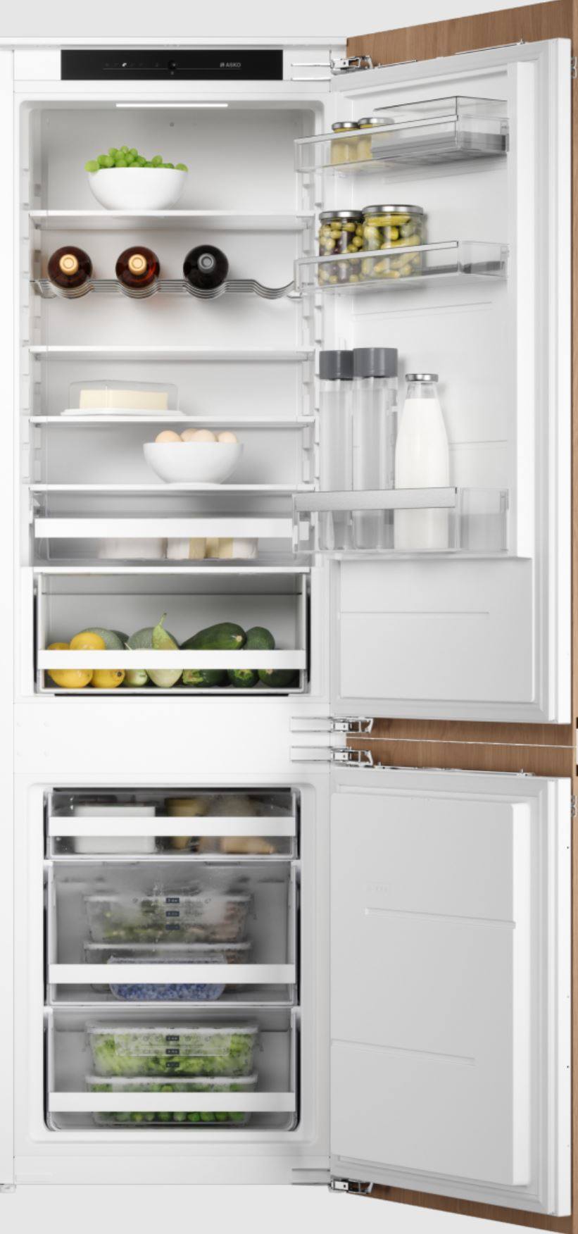 ASKO RF31831SEI Kombinationskøleskabet er meget praktisk at have i dit køkken. De overlappende separate hvidevarer sparer plads. Med en volumen på 187 liter i køleskabet og 71 liter i fryseren er der nok opbevaring af mad til hele familien. Hurtig indfrysning sikrer, at maden fryses hurtigt ned, og at fryseren er tilstrækkelig koldnok. Køleskab med integreret fryser, der er let at placere i dit køkken, da dørhængslerne kan vendes. Den lydsvage drift sikrer komfortabel brug af fryse-køleskabet uden ekstra støj.