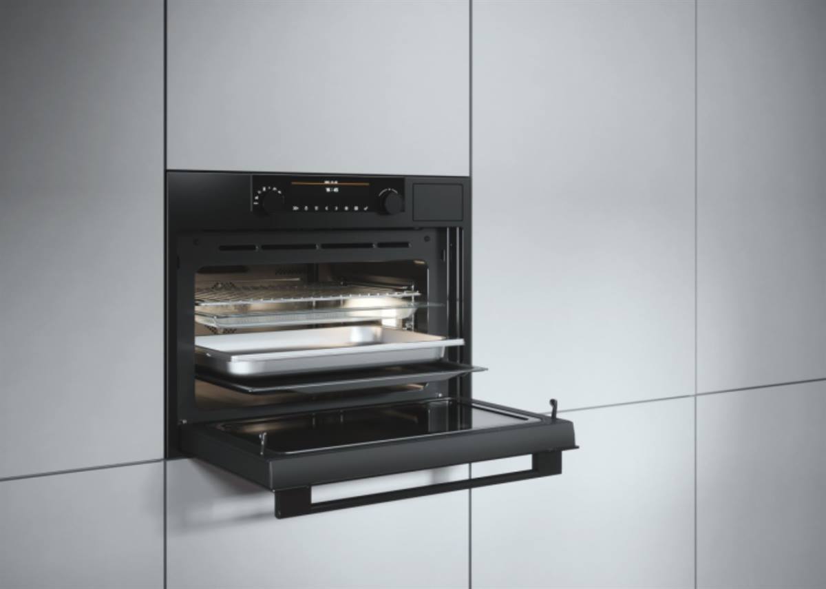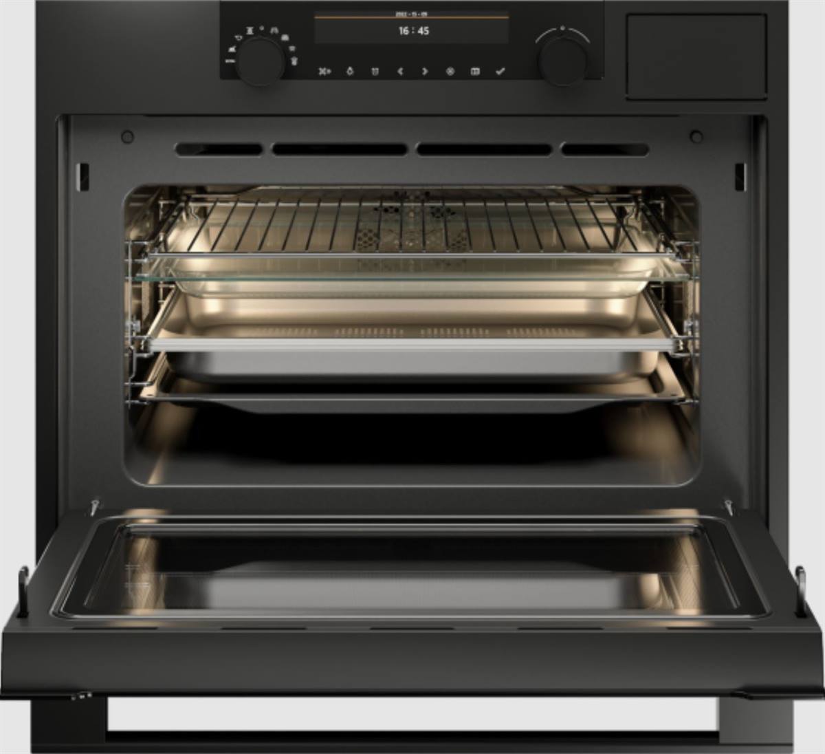 Denne 5-i-1 kombiovn i glas i en blød sort farve slår tonen an med dens slanke og sofistikerede design. Dens kombination af en funktion med fuld damp, mikrobølger og traditionel varme forbedrer din madlavning fra dagligdags måltider til gourmet-middage. Det er verdens mest fleksible kombiovn, der redefinerer hvad en ovn kan være i en kompakt størrelse på 45 cm. Ovnen er udstyret med 4.3” touch i fuld farve og endeløst mange tilberedningsmuligheder.