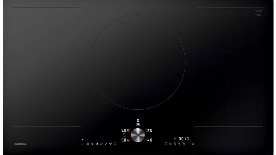 • 2 flex-induktionskogezoner med hver 20x23 cm (2200 W, med booster 3700 W), sammenkoblet 40x23 cm (3300 W, med booster 3700 W)