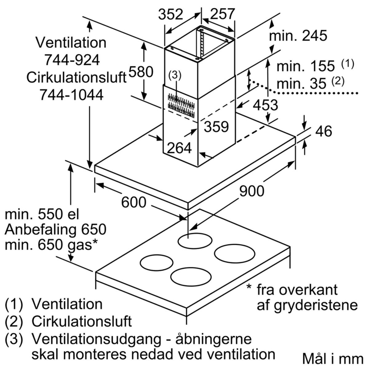 • Lydniveau recirkulation: Maks. normal brug:67dB(A) re 1 pW