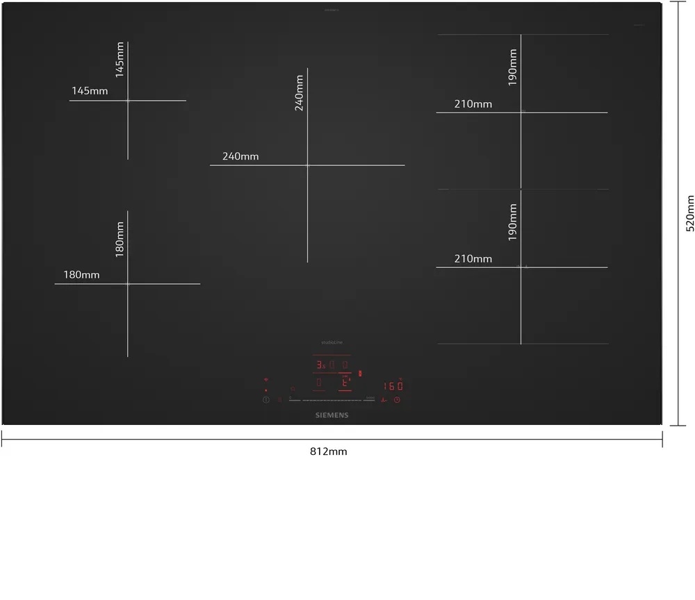 • Kogezone bagerst til venstre: 190 mm, 210 mm, 2.5 kW (max. effekt3.7 kW)