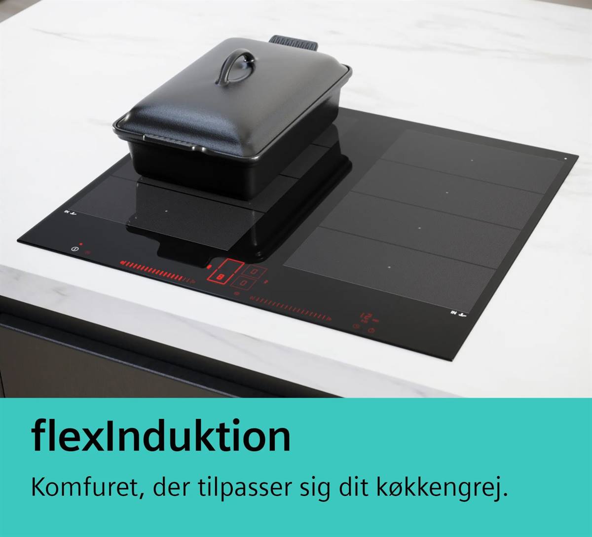 • 3 x flexZone: Brug køkkengrej af enhver form eller størrelse overalt inden for den 40 cm lange zone.