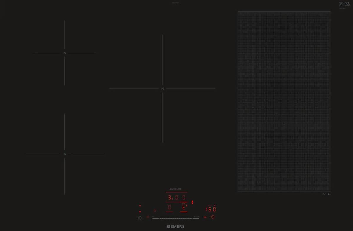 • Fleksibel madlavning med flexInduction: Brug køkkengrej af enhver form eller størrelse overalt inden for den 40 cm lange zone.