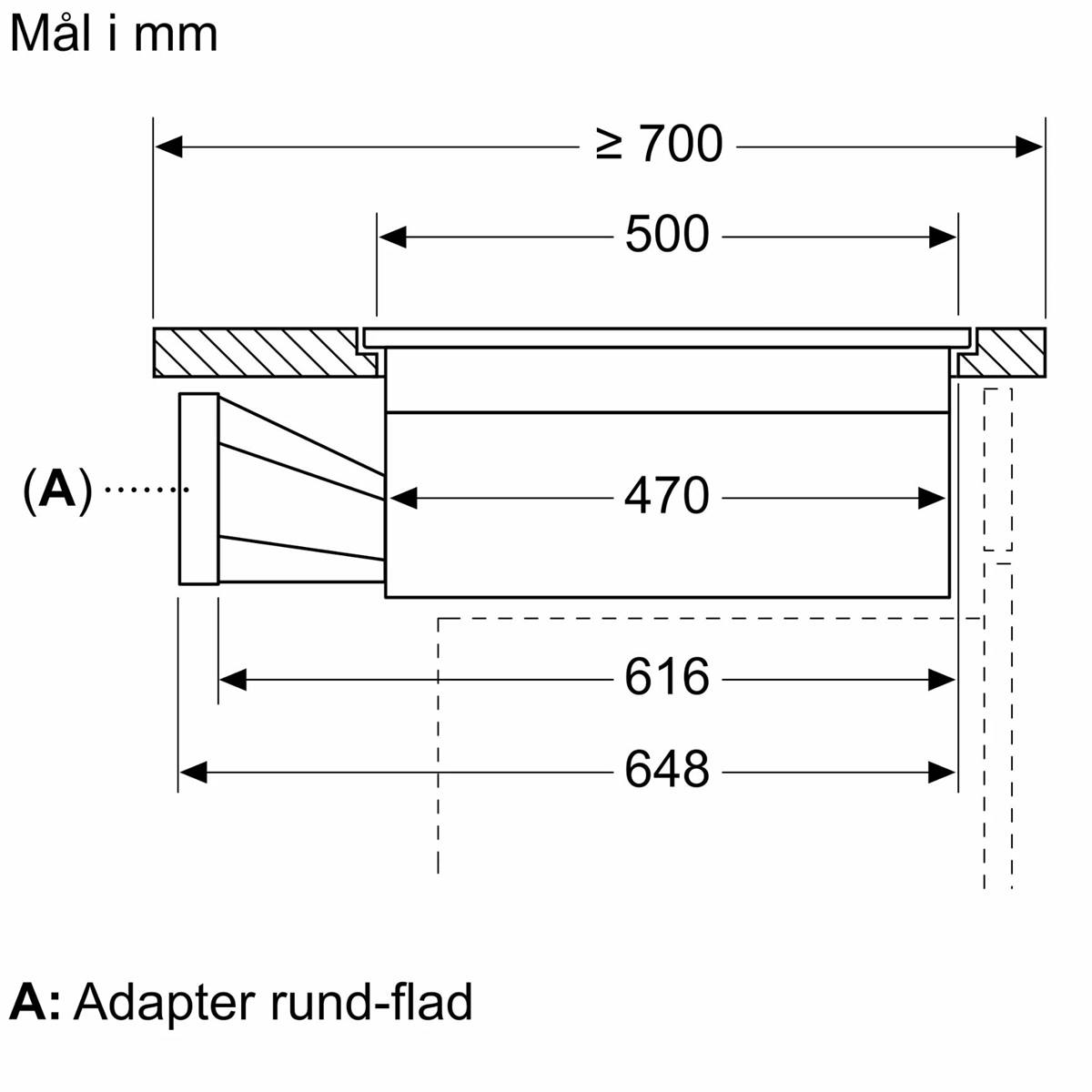 • Velegnet til kanaliseret eller recirkuleret udsugningsinstallation. Installationstilbehør til ukanaliseret recirkulation, heriblandt fire CleanAir lugtfiltre og et teleskopisk skydelement, er inkluderet i kogepladen. Tilbehør til andre installationsmuligheder er tilgængeligt, detaljer i installationsteksten.