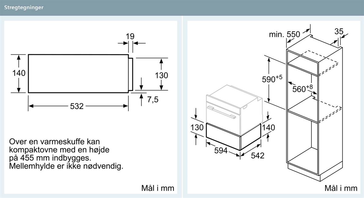 • 14 cm høj skuffe der er ideel i kombination med et 45 cm kompakt produkt.